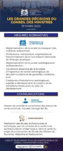 AccueilPolitiqueBénin : voici les grandes décisions du Conseil des ministres de ce... Politique Bénin : voici les grandes décisions du Conseil des ministres de ce mercredi By Lamazone mars 19, 2025 0 195 Partager FacebookTwitterPinterestWhatsApp Le gouvernement de Patrice Talon s’est réuni en Conseil des ministres ce mercredi 19 mars 2025. Plusieurs décisions ont été prises. Partager FacebookTwitterPinterestWhatsApp Article précédentCRIET : renvoi du procès de Louis Philippe HoundégnonArticle suivantLancement du nouveau service Push & Pull : Les transferts d’argent entre compte BOA et Moov Money possibles Lamazone RELATED ARTICLES Politique Afrique du Sud : la justice maintient Kemi Seba en détention avril 29, 2026 Politique FCBE : Paul Hounkpè annonce sa démission avril 28, 2026 Politique Arrestation de Hugues Sossoukpè : RSF porte plainte contre le Bénin et la Côte d’Ivoire devant la CEDEAO avril 28, 2026 LAISSER UN COMMENTAIRE Annuler la réponse Commenter : S'il vous plaît entrez votre commentaire! Nom :* S'il vous plaît entrez votre nom ici Email :* Vous avez entré une adresse email incorrecte! Veuillez entrer votre adresse email ici Site : Enregistrer mon nom, email et site web dans ce navigateur pour la prochaine fois que je commenterai. - Advertisment - Most Popular Afrique du Sud : la justice maintient Kemi Seba en détention avril 29, 2026 FCBE : Paul Hounkpè annonce sa démission avril 28, 2026 Real Madrid : Eder Militao opéré avec succès avril 28, 2026 Real Madrid : Aurélien Tchouaméni vers une prolongation avril 28, 2026 Voir plusCommentaires récentsA WordPress Commenter dans Hello world!