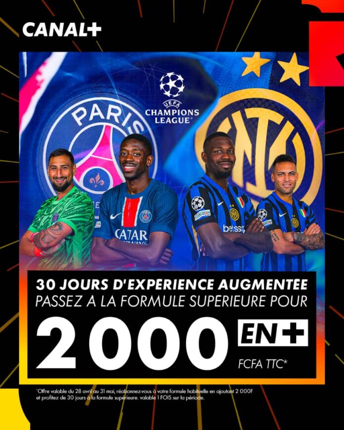 CANAL+ facilite l’accès à l’événement en rendant la diffusion disponible exceptionnellement dès la formule ÉVASION, de 10 000 FCFA. Les abonnés à la formule ACCESS (5.000 FCFA) peuvent lors du réabonnement faire un complément de 2000 FCFA pour profiter pendant 30 Jours de la formule EVASION A 7 000 FCFA au lieu de 10 000 FCFA. L’offre est valable jusqu’au 31 mai 2025 et est valable même pour les abonnés déjà coupés.