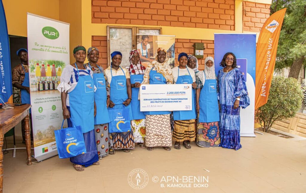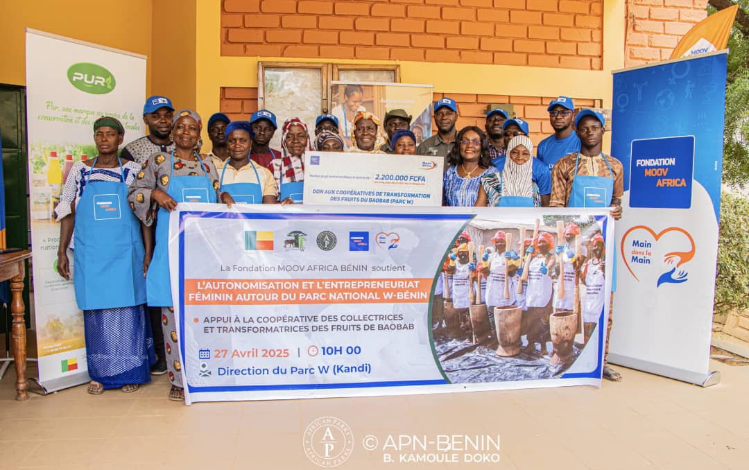 La Fondation Moov Africa Bénin a posé un geste fort en faveur de l’autonomisation économique des femmes à Kandi. En partenariat avec African Parks Network, elle a remis un chèque de 2,2 millions de francs CFA aux coopératives spécialisées dans la transformation des fruits du baobab, installées autour du Parc National W. Cette action s’est déroulée dimanche dernier et s’inscrit dans le cadre de la 20e édition du Tour cycliste du Bénin.